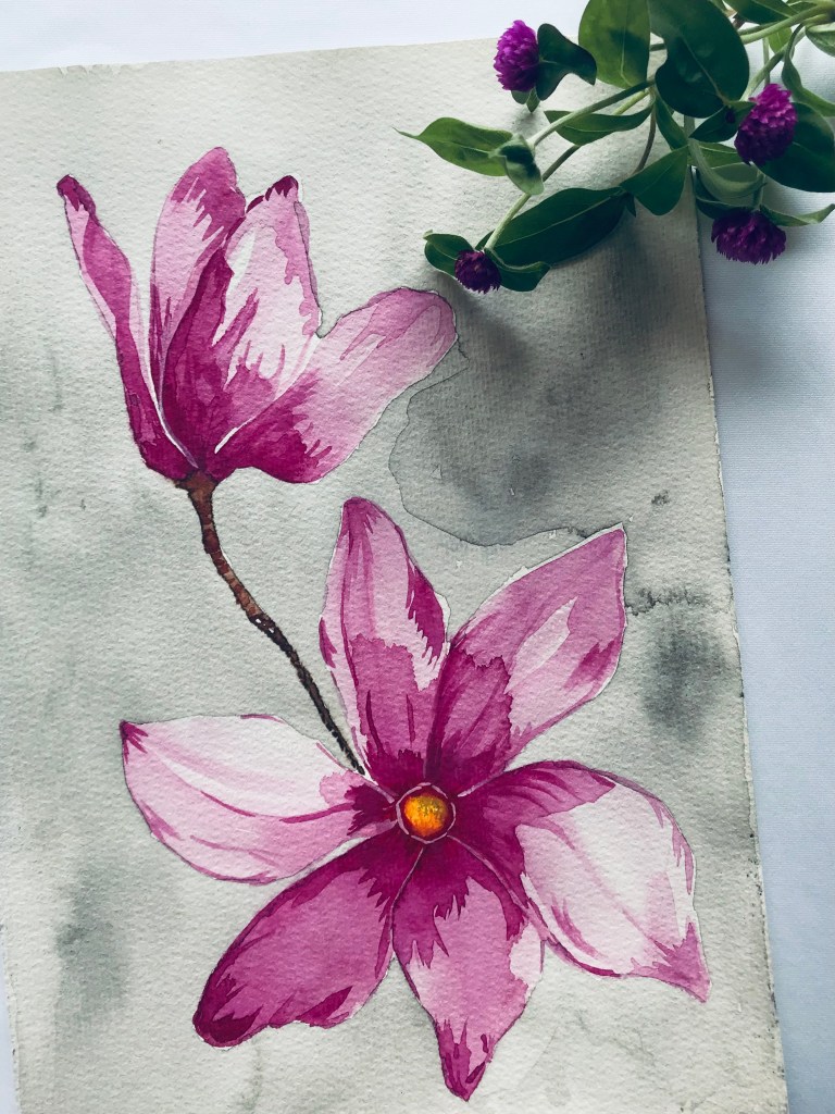 Inviting beauty into our lives. These pieces deeply speak to an inner awakening I had. Creating beauty by looking at the candid beauty in nature and bringing it into our lives and our homes. The featured painting, the ‘Awakening’, a pink vibrant Magnolia came to life with such vivacity and it got me started on the rest of the collection. I like to think that I just went back to basics as an Artist and started small. A collection of petite florals!