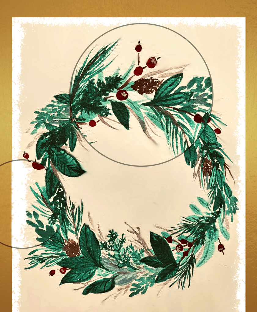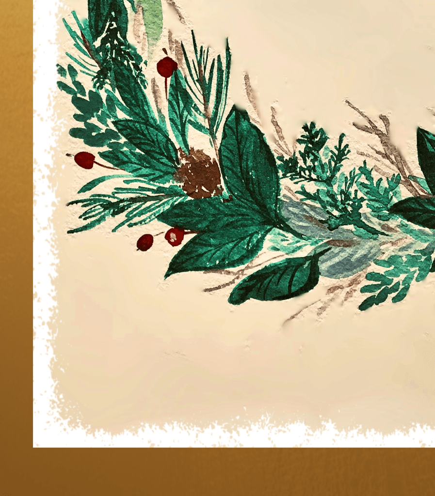 Designed to feel classic and vintage, the wreath was hand painted first and then digitised to perfection. This artwork comes in high resolution at 300 dpi to ensure print quality. Easily printable anywhere at your closest printer, upload to an online printing site or simply print at home. The gold border around is easily printable and does not require gold ink.